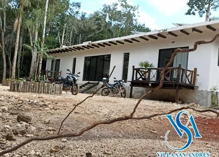 Villa San Andres The Unique Private Jungle Villa Solferino se nachází 13-minutovou chůzí od El Corchal a 20-minutovou chůzí od Arbol Milenario. Součástí vily je kuchyně a balkón, přístroj na přípravu kávy/čaje a TV s plochou obrazovkou se satelitními kanály v pokojích.